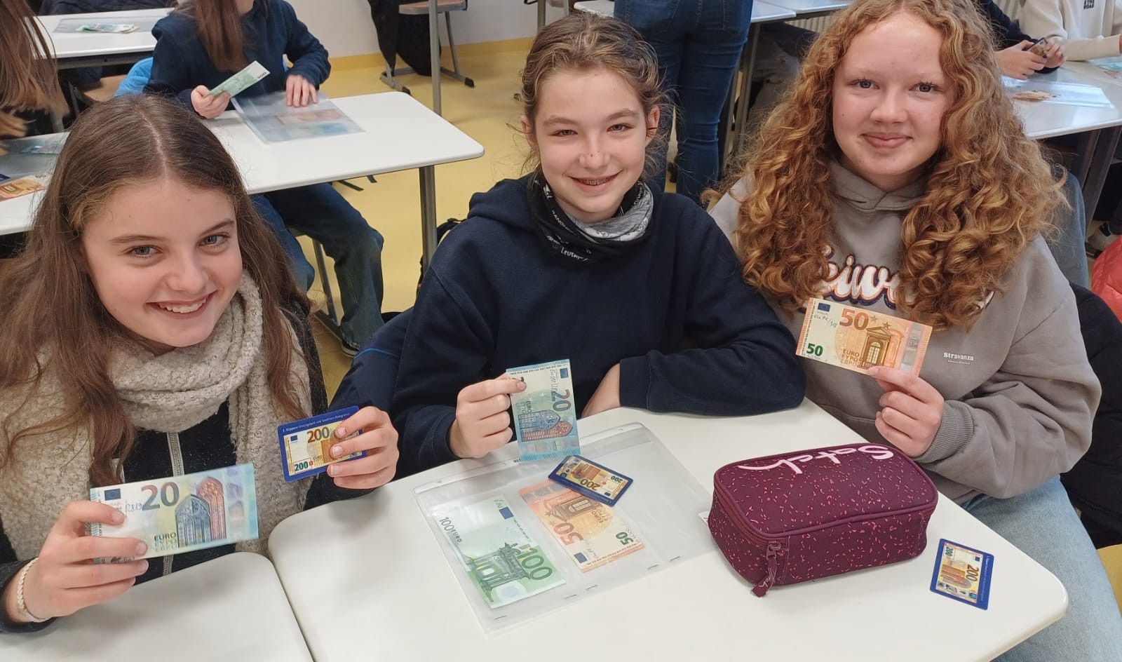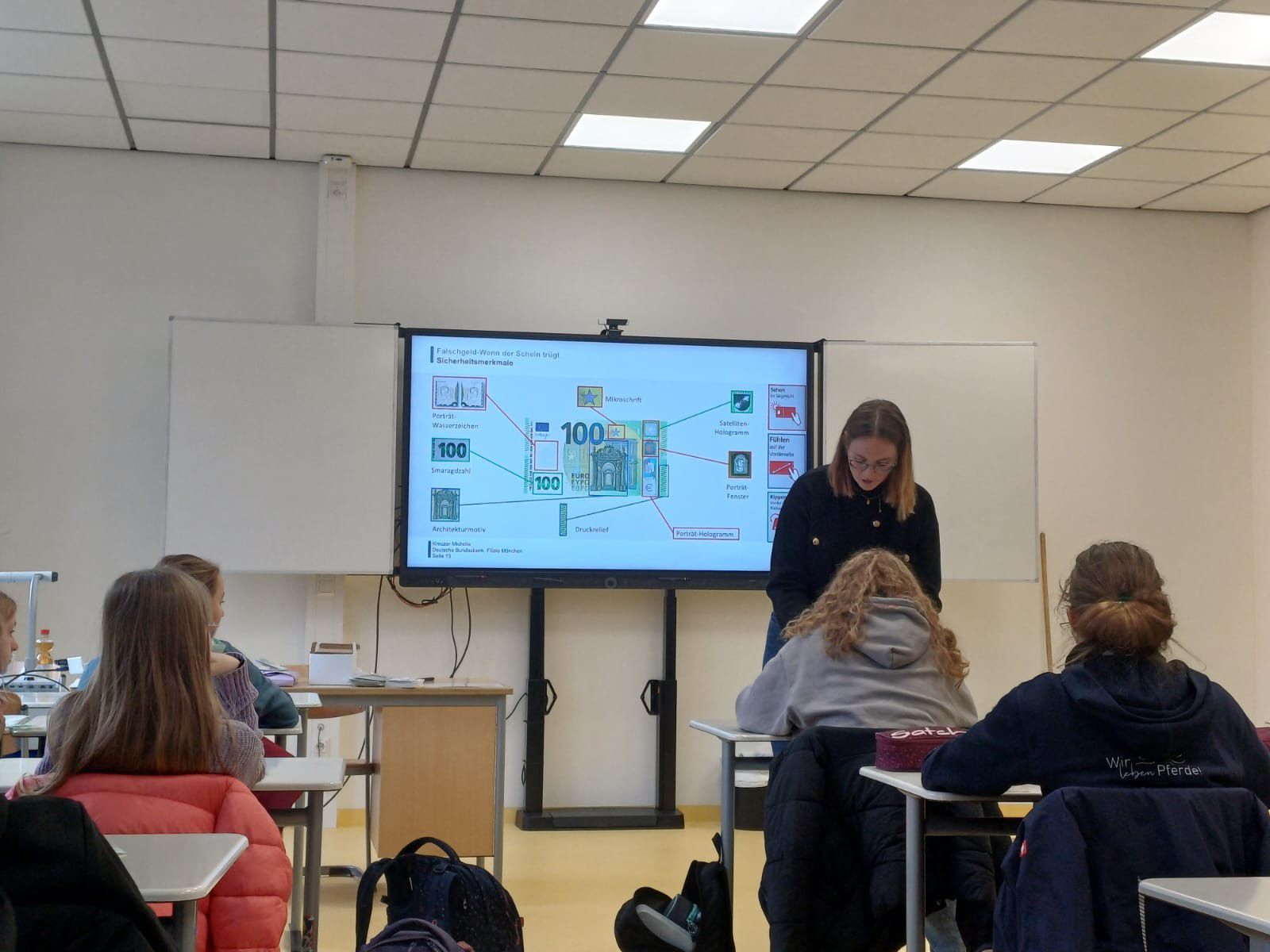 Im Anschluss nutzten die Klassen die Gelegenheit, zahlreiche Fragen zu stellen: Was geschieht mit eingezogenem Falschgeld? Wie viele Fälschungen sind im Umlauf? Und was passiert, wenn man selbst unwissentlich mit Falschgeld bezahlt? Gerade für die Schülerinnen und Schüler der wirtschaftswissenschaftlichen Wahlpflichtfächergruppe ergaben sich dabei immer wieder Anknüpfungspunkte zum Unterricht im Fach BwR, in dem wirtschaftliche Abläufe und der Umgang mit Geld eine zentrale Rolle spielen.