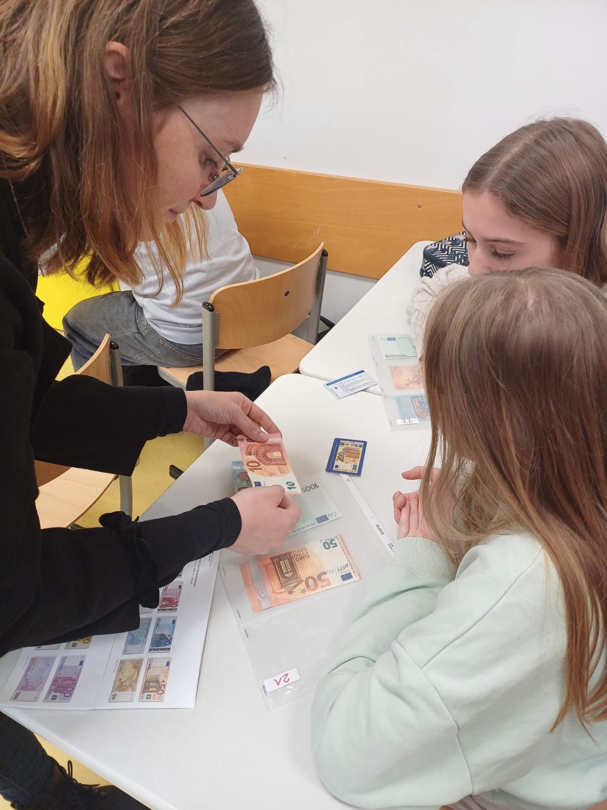 Dabei erhielten die Schülerinnen und Schüler nicht nur theoretische Einblicke in die Aufgaben der Bundesbank, sondern konnten auch selbst aktiv werden. Anhand „echter“ Falschgeldscheine untersuchten sie Sicherheitsmerkmale von Banknoten ganz genau und lernten, woran sich Fälschungen erkennen lassen. Mit prüfendem Blick wurden Wasserzeichen, Hologramme und Sicherheitsfäden kontrolliert – und so mancher war überrascht, wie raffiniert Fälschungen gemacht sein können.