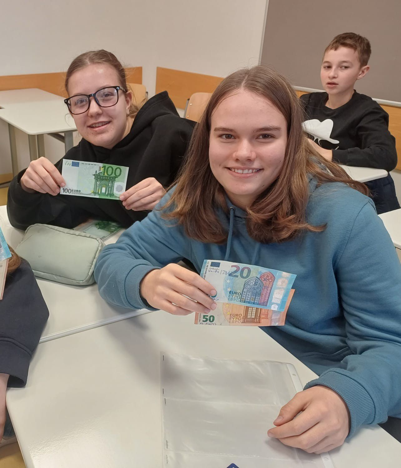 Im Anschluss nutzten die Klassen die Gelegenheit, zahlreiche Fragen zu stellen: Was geschieht mit eingezogenem Falschgeld? Wie viele Fälschungen sind im Umlauf? Und was passiert, wenn man selbst unwissentlich mit Falschgeld bezahlt? Gerade für die Schülerinnen und Schüler der wirtschaftswissenschaftlichen Wahlpflichtfächergruppe ergaben sich dabei immer wieder Anknüpfungspunkte zum Unterricht im Fach BwR, in dem wirtschaftliche Abläufe und der Umgang mit Geld eine zentrale Rolle spielen.