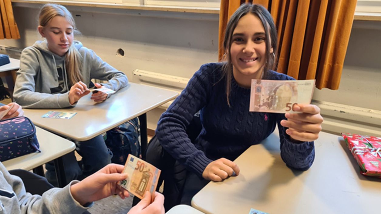 Ihr erworbenes Wissen vertieften die Schüler*innen an ausgeteiltem Falschgeld und konnten dies aufgrund fehlender Sicherheitsmerkmale zügig als solches identifizieren.